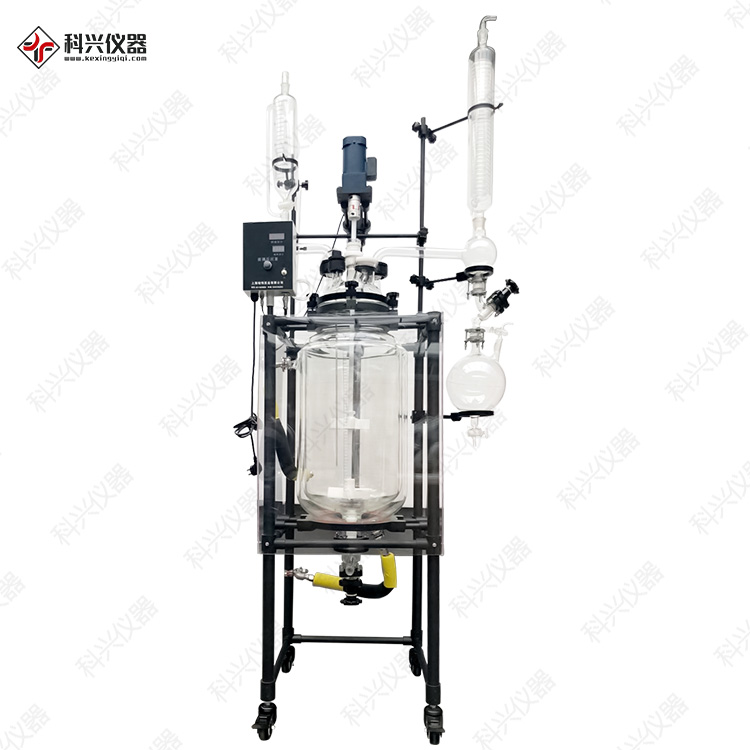 我公司双层玻璃反应釜为双层玻璃设计,内层放入反应溶媒可做搅拌反应,夹层可通上不同的冷热源(冷冻液,热水或热油)做高温反应(配置相应的循环油浴锅,温度可以达到300℃)或低温反应(配置相应的低温冷冻液循环系统,温度可以达到-80℃),也可选择加热制冷一体循环机。该设备整体不锈钢立柱移动式框架结构,六口反应釜盖;大口设计便于清洁,标准口插口可选择组装回流、加液、测温等蒸馏合成装置;不锈钢包裹聚四氟乙烯搅拌桨,适用于低到高黏度液体的搅拌与混合;下放料口法兰口和四氟阀门,容器内无死角,可拆卸下放料便于固体物料出料彻底快捷。